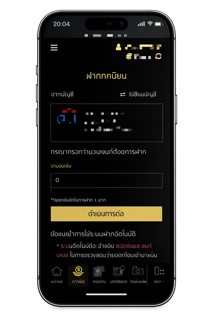 มันคือระบบอัตโนมัติ 100% หมายความว่าเมื่อคุณทำรายการฝากหรือถอน ระบบจะประมวลผลโดยอัตโนมัติ ไม่มีแอดมินมาคอยกดอนุมัติ ไม่ต้องแคปสลิปส่งให้ใคร ไม่ต้องรอคิว เพียงแค่คุณกดทำรายการ ระบบจะตรวจสอบและดำเนินการให้ทันทีภายในไม่กี่วินาที