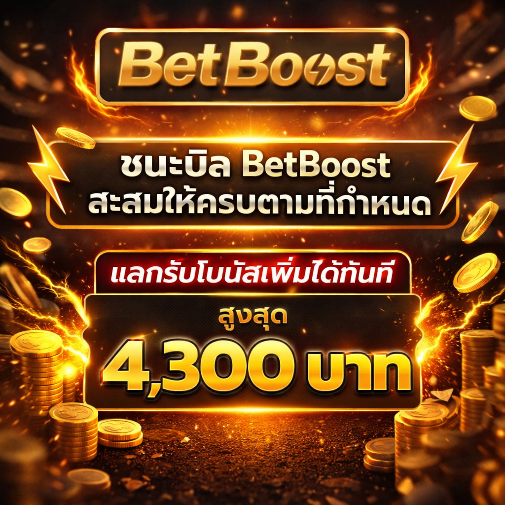 - กิจกรรม BetBoost : เพิ่มเงินรางวัลสูงสุดถึง 4,300 บาท สำหรับการเดิมพันบางรูปแบบ